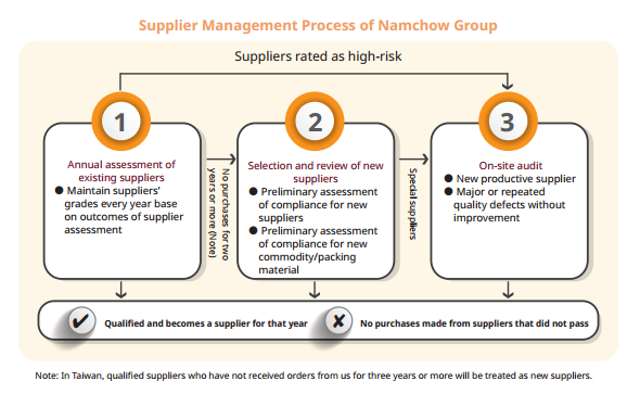 In addition to the procurement of bulk raw materials, in order to ensure that our suppliers provide safe and secure products, we require our suppliers to obtain accreditations from ISO, HACCP, AIB, HALAL, or FSSC. Some of our suppliers have also obtained other international accreditations such as RSPO and FSC. Any direct, indirect and packing materials required for production or packing are purchased by the procurement department of the respective production site after assessing raw material and supplier risks. Procurement policies have been established in accordance with local regulations, while issues concerning food safety and traceability are also being addressed properly.
