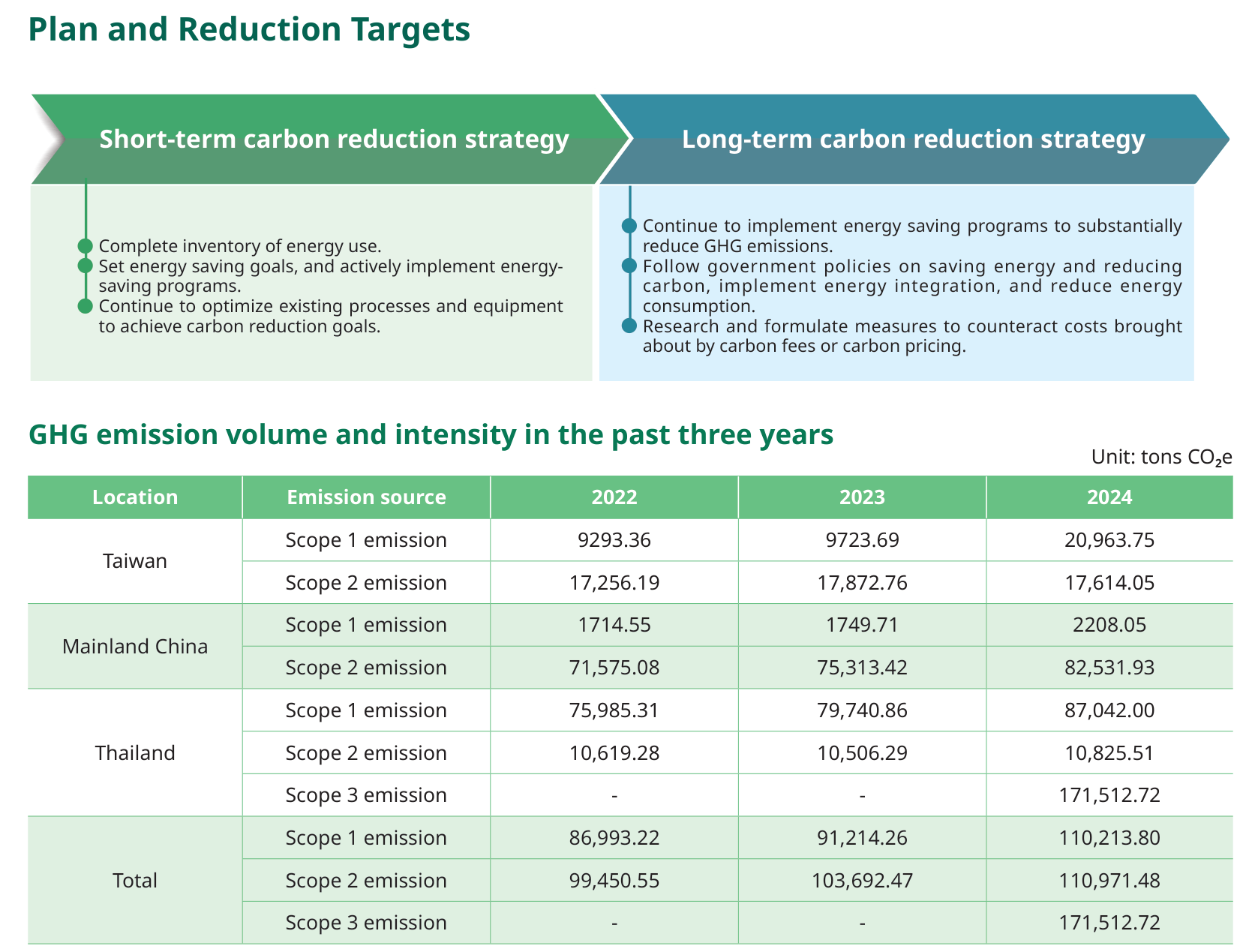Namchow Group is committed to promoting energy conservation and emission reduction, continues to evaluate and introduces international management standards to improve energy management efficiency and climate resilience. In the Mainland China and Thailand regions, our factories have established environmental management systems through ISO 14001 certification and third-party verification to comply with applicable laws, regulations, and other environmental requirements. We also adhere to the principles of ISO 14064-1 for greenhouse gas inventories, gradually conducting GHG emissions inventories and verifications in various regions. Carbon reduction targets will be set based on the inventory results. Starting from an inventory of energy consumption, we will plan a reduction plan, and evaluate and develop actions in multiple aspects to respond to climate change.