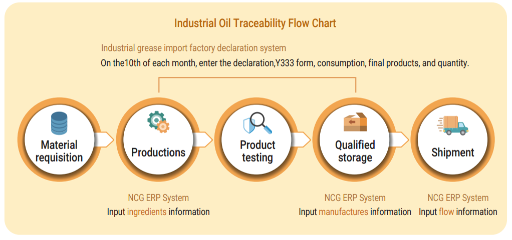 Namchow Detergent has set up a database to track the distribution of all imported industrial oils as part of the imported general industrial oil & fat factory reporting system required by law. The Taoyuan Factory now uploads 100% of its traceability data for products made from imported industrial oil to the reporting system.