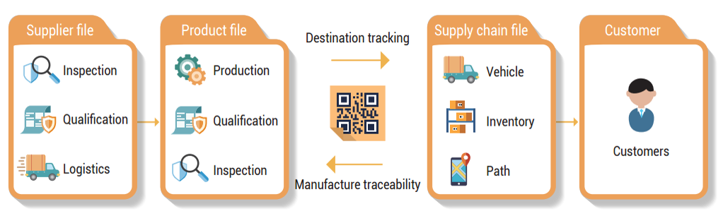 The ESC (Electronic Supervision Code) two-dimensional code encoding and the WMS (Warehouse Management System) are two mature and operational systems. A 2D code is printed on each product carton and another 2D code is automatically generated for each pallet. The 2D codes of the pallets and the cartons are then linked to each other, making it possible to query the product warehouse and shipping information through the 2D code. In the future, users can scan the 2D code with their mobile phones to get more product information.